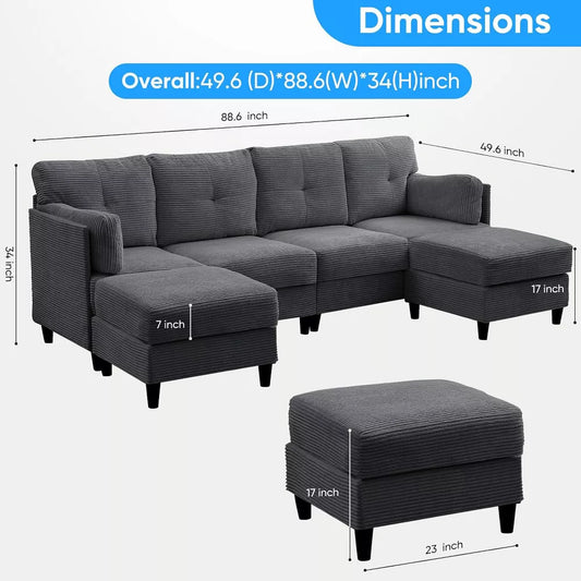 Mjkone 89" U Shaped Sectional Couches with Storage Ottoman