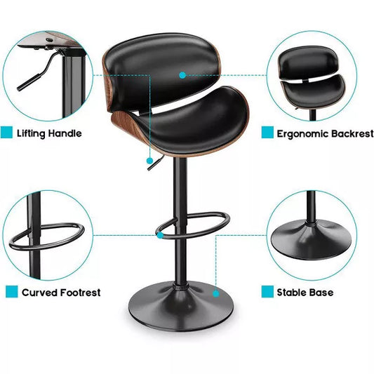 Gikpal Barstools, Adjustable Bentwood Barstools, Modern PU Leather Upholstered Bar Chair with Back and Footrest, for Bar, Dining Room