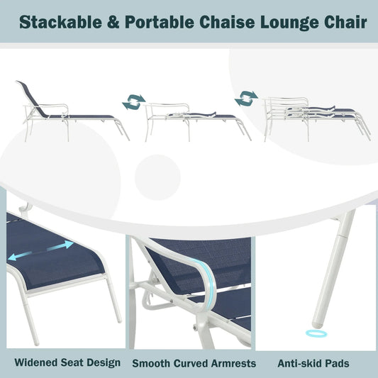 Seizeen Chaise Lounge Chair, 3-Piece Lawn Pool Chair Foldable, Outdoor Textilene Sun Recliner w/ 5 Adjustable Backrest, Heavy-duty Steel Frame, Blue