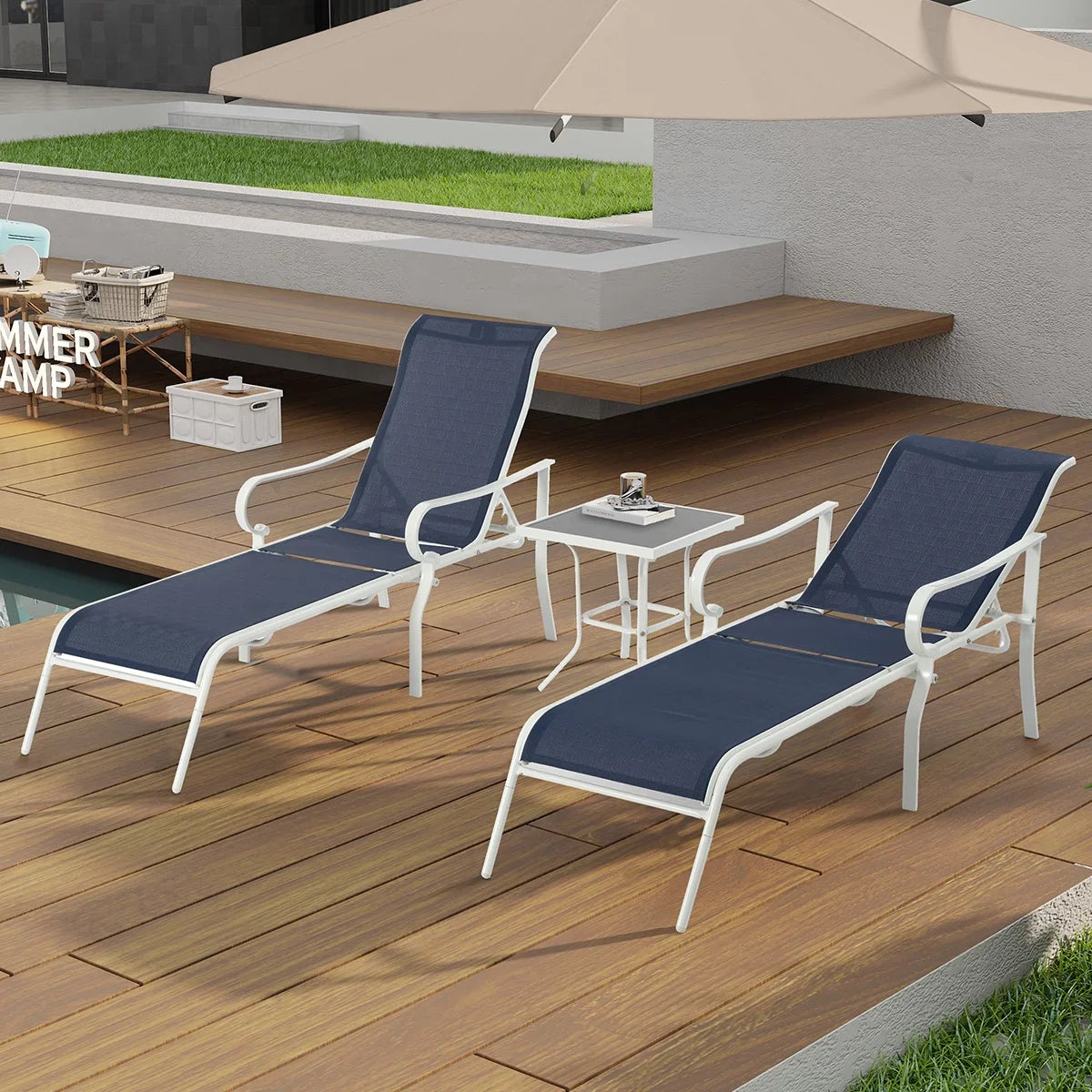 Seizeen Chaise Lounge Chair, 3-Piece Lawn Pool Chair Foldable, Outdoor Textilene Sun Recliner w/ 5 Adjustable Backrest, Heavy-duty Steel Frame, Blue